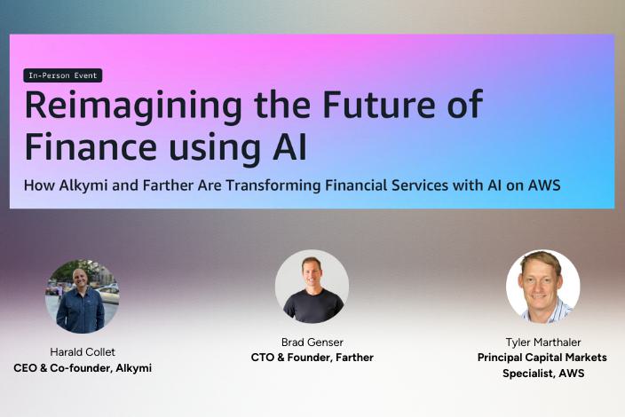At the recent Reimagining the Future of Finance event, leaders from Alkymi, AWS and Farther explored how AI is reshaping financial services and what it will take to implement these technologies responsibly. The discussion centered on how AI is transforming private markets, wealth management and the broader financial ecosystem. The discussion focused on real-world impact, essential security measures and the practical considerations firms must address as they adopt these tools at scale.