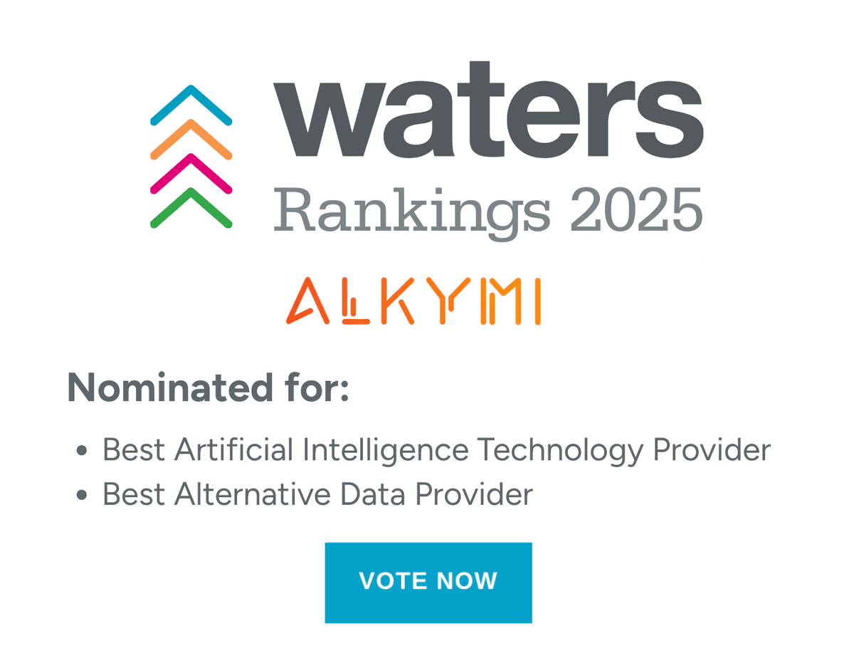 We’re excited to share that Alkymi has been nominated for the 2025 WatersTechnology Rankings Awards in two categories: